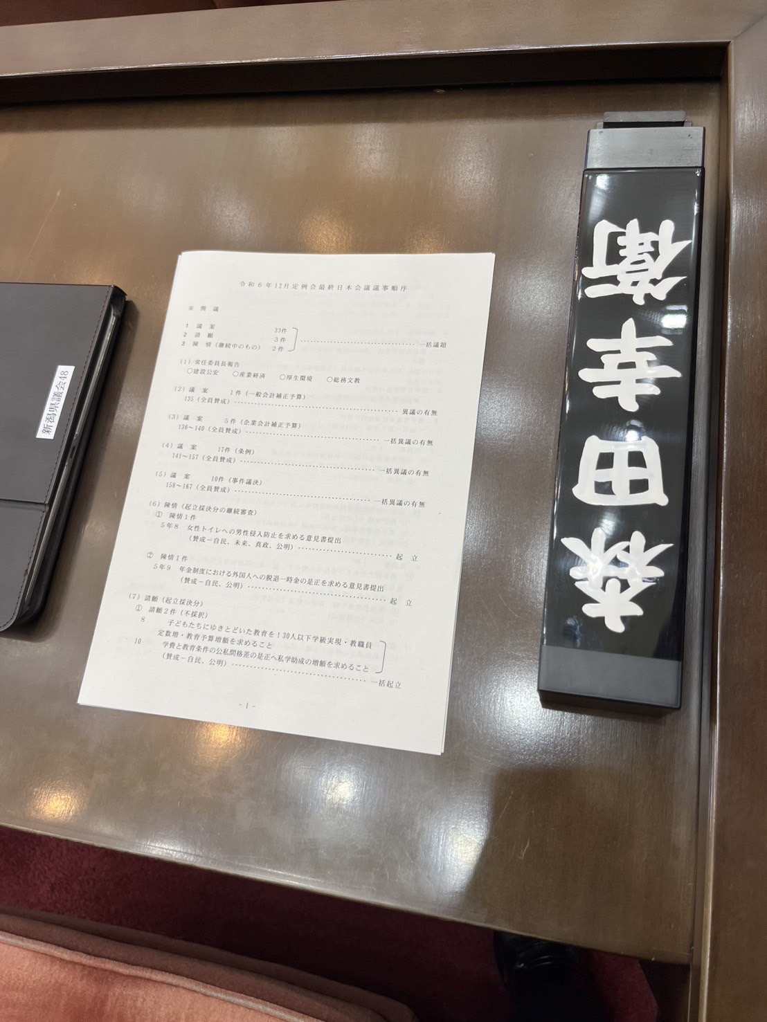 HOME > お知らせ > お知らせ 12月定例会が閉会しました 2024年12月23日 12月定例会が閉会しました。 本日で新潟県議会、12月の定例会が閉会となりました。 本会において12月6日に私、森田こうえいが一般質問に立ちました。 質問内容の詳細につきましては改めてこうえい通信等でご報告させていただきます。 -お知らせ