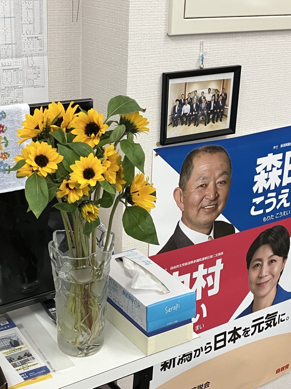 HOME > お知らせ > お知らせ 事務所だより 2025年5月20日 後援会長がひまわりを持ってきてくださいました。 さっそく事務所に飾らせていただきました。事務所が明るくなりました。 事務所の近くまでおいでの際は是非お立ち寄り下さい。 -お知らせ