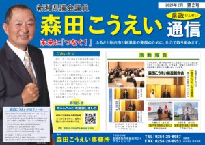 HOME > 県政通信 > 「県政通信」バックナンバー 森田こうえい県政通信 第7号を発行いたしました この度、森田こうえい県政通信 第7号を発行いたしました。 是 ...続きを読む 森田こうえい県政通信 第6号を発行いたしました この度、森田こうえい県政通信 第6号を発行いたしました。 是 ...続きを読む 森田こうえい県政通信 第5号を発行いたしました この度、森田こうえい県政通信 第5号を発行いたしました。 是 ...続きを読む 森田こうえい県政通信 第4号を発行いたしました この度、森田こうえい県政通信 第4号を発行いたしました。 是 ...続きを読む 森田こうえい県政通信 第2号を発行いたしました この度、森田こうえい県政通信 第2号を発行いたしました。 是 ...続きを読む 森田こうえい県政通信を発行いたしました この度、創刊号となる森田こうえい県政通信を発行いたしました。 ...続きを読む