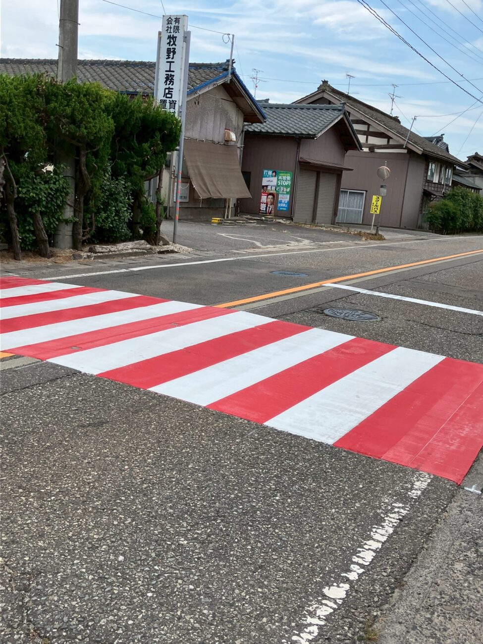 旧竹嶋小学校前の横断歩道がカラー横断歩道になりました。